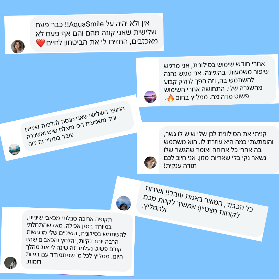ㅤמדווחים כי כי חל שיפור משמעותי והם מרוצים מאיכות המוצרים של AquaSmile